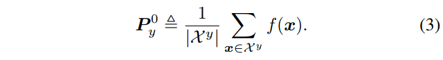 Prototype propagation定义在子图${\cal G}_i$上,包含的类别为${\cal Y}^{ {\cal G}_i}$。给定相应的属于第$y \in {\cal Y}^{ {\cal G}_i}$类的训练数据${\cal X}^y$,第$y$类的原型初始化为样本$x \in {\cal X}^y$的特征$f(x)$的平均值。