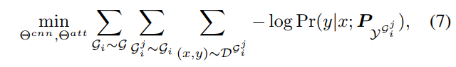 对于子图${\cal G}_i$上的每一个分类task $T$,$P_y$被应用在公式(2)中产生似然概率。公式(1)中的似然最大化,旨在对$f(\cdot)$中的$\Theta ^{cnn}$和attention机制中的$\Theta ^{att}$同时进行优化。