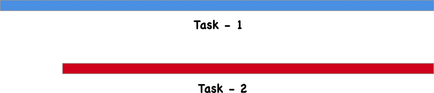 在这里,您异步执行了这两个任务。在异步编程模型中,当执行一项任务时,您可以切换到另一项任务,而无需等待前一项任务完成。