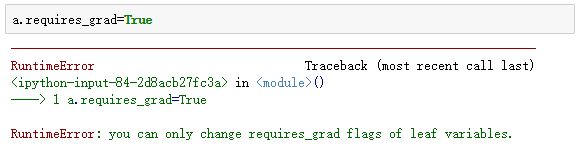 我这里的Pytorch版本为1.3.1,若运行a.requires_grad = True是不会报错,而且a的requires_grad确实已经改变了。